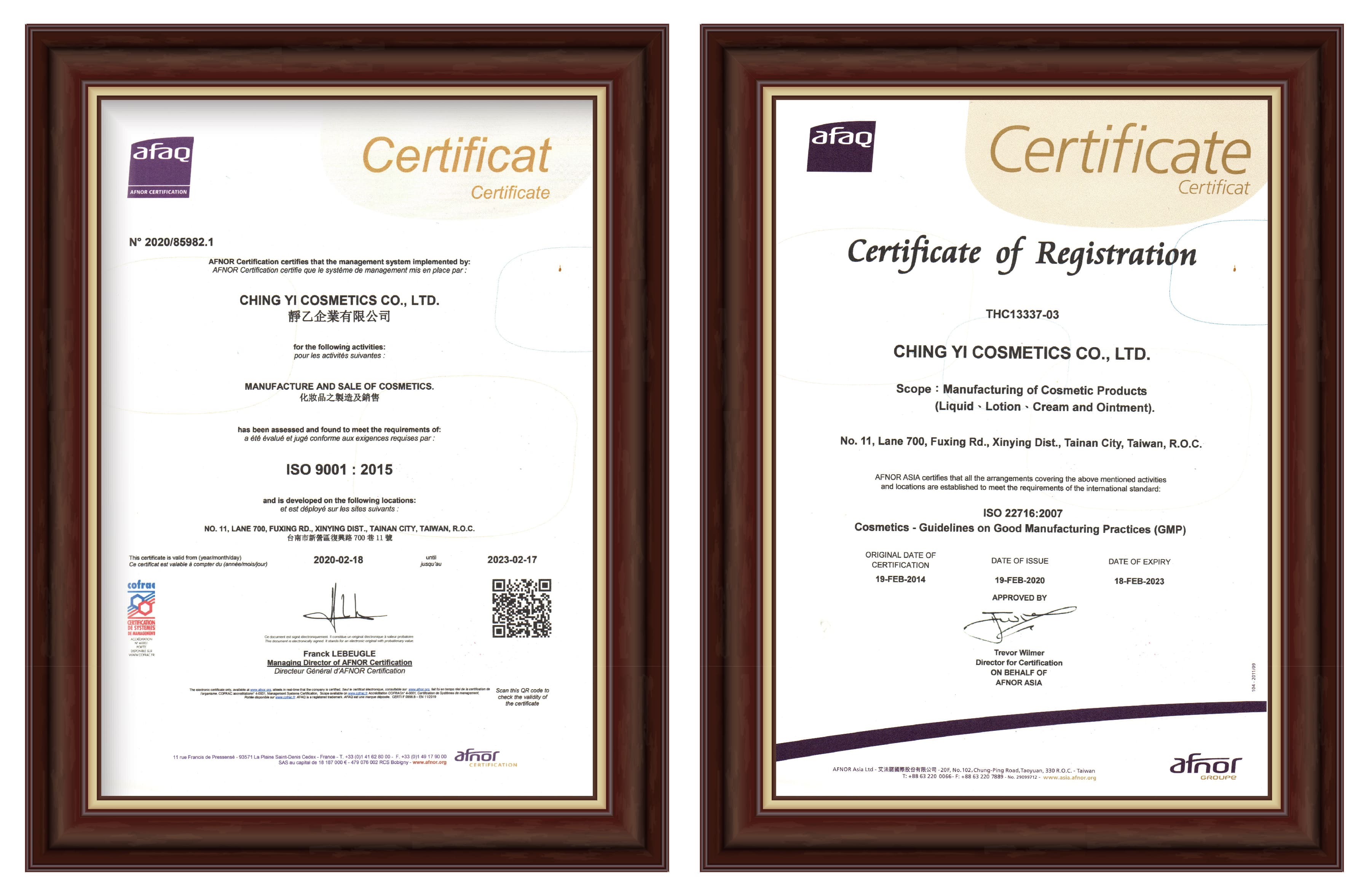 【榮譽】專業製作保養品面膜,榮獲多項獎項以及國際認證。